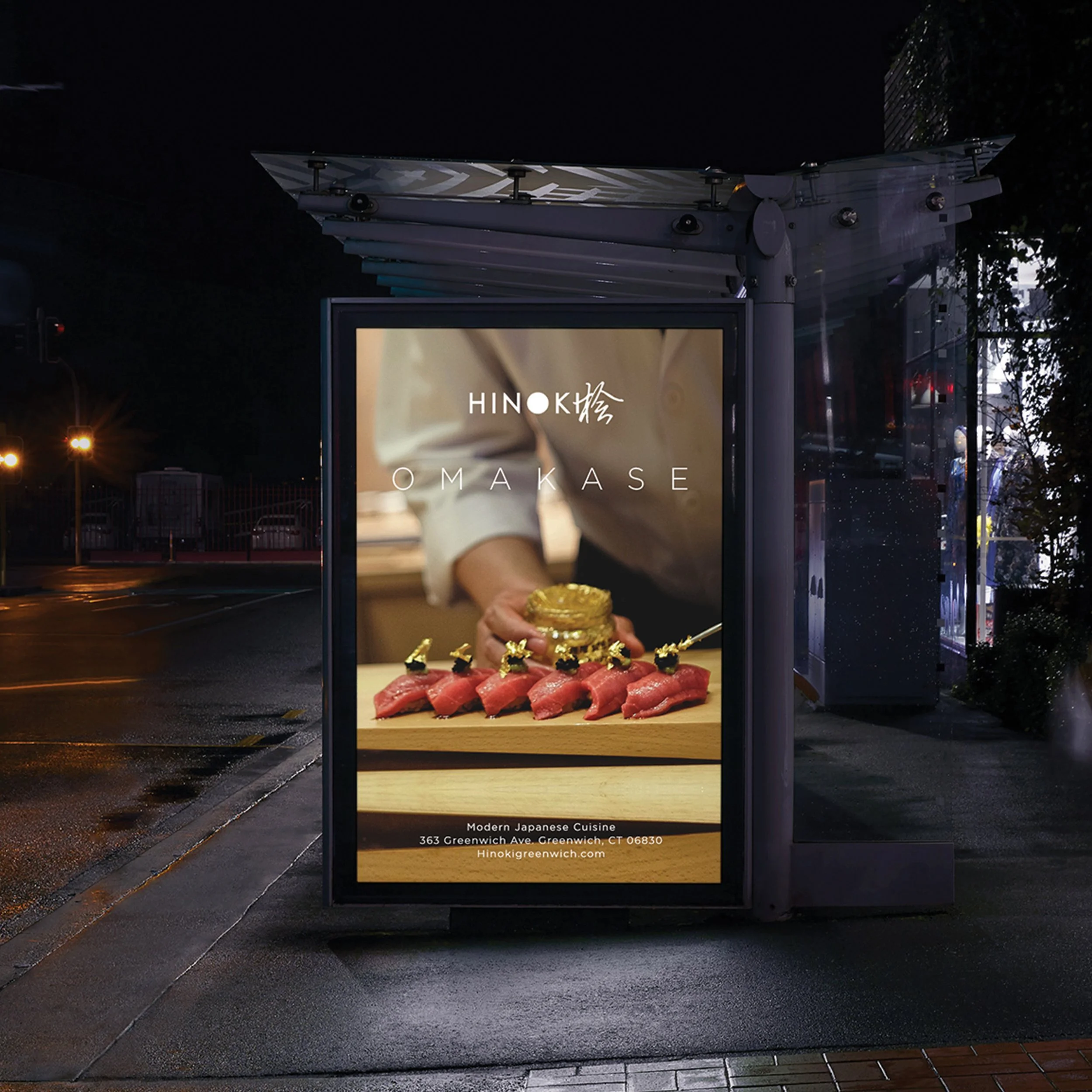 Hinoki, is a modern Japanese restaurant, is located in Greenwich, CT. Design of logo is inspired from the sun symbol of Japanese flag. The choice of blue and yellow, is Hinoki’s color palette, represents original and noble.